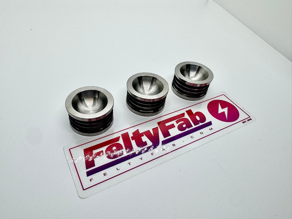 Every Feltyfab cam seal is finished for long-term durability and engineered for enthusiasts who demand uncompromising performance and reliability. These are 2 sided with a flat, and a dimpled side allowing the user to choose what style they want to display. O-rings included.