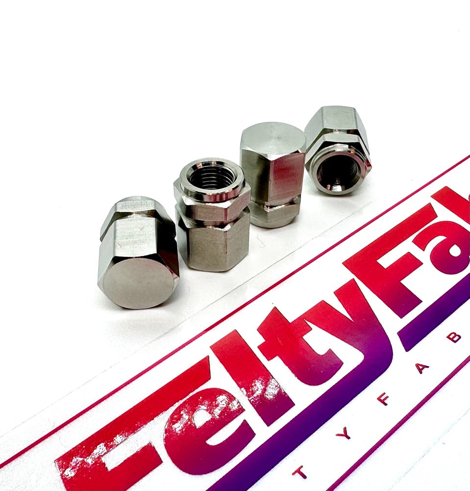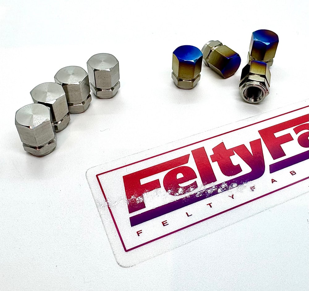 Unlike aluminum or steel alternatives, FeltyFab valve caps are crafted from true forged titanium, delivering unmatched durability and a clean, raw-metal aesthetic that complements any wheel setup.